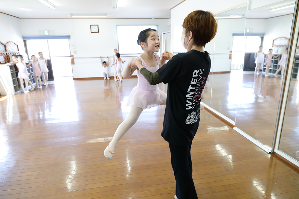 末っ子の甘えん坊で自分からあまり発信することがない子でしたが、バレエを始めてからは年下のお友達の手を繋いで連れて行ってあげたり、面倒を見てあげられるようになりました。